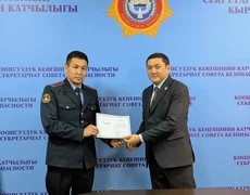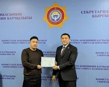 Бишкек, 04.03.26 /Кабар/. Коопсуздук кеңешинин катчысы Адилет Орозбеков бүгүн, 4-мартта,мамлекеттик кызматкерлерге "Автоматташтырылган системалардын маалыматтык коопсуздугу" багыты боюнча квалификациясын жогорулатуу тууралуу күбөлүктөрдү тапшырды.