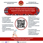 “QR-код аркылуу жарандар сот тутумунун жалпы ишине карата пикирлерин калтыра алышат. Бул механизм бир нече маанилүү милдеттерди аткарат. Сот ишмердүүлүгүнүн ачыктыгын камсыздайт. Жарандарга соттук териштирүүлөр, судьялардын кесипкөйлүгү жана чечимдердин адилеттүүлүгү боюнча өз ойлорун билдирүүгө мүмкүнчүлүк берет. Бизге кемчиликтерди өз убагында аныктап, аларды жоюу боюнча чара көрүүгө жардам берет. Сот системасына болгон ишенимди арттырат”, - дейт Медербек Сатыев.