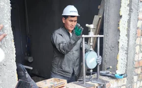 Бишкек, 23.04.26. /Кабар/. Талас облусунун Көпүрө-Базар айылындагы оорукананын курулушунда кирпичтердин сапаты текшерилди.