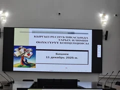 Кыргызстандын тарых илимин өнүктүрүүнүн мамлекеттик концепциясынын долбоору сунушталып, талкууланды. Анда ата мекендик тарых илимин мындан ары өнүктүрүүнүн артыкчылыктуу багыттары, максаттары жана механизмдери аныкталган.