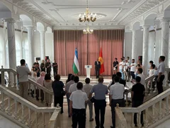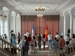Ташкент, 21.05.25. /Кабар/. Кыргызстандын Өзбекстандагы элчиси Дүйшөнкул Чотонов бүгүн Ташкент шаарында жашаган кыргызстандык жарандар, жогорку окуу жайларда билим алып жаткан студенттер жана Өзбекстандын Куралдуу күчтөр академиясында окуган офицерлер менен жолугушуу өткөрдү, деп билдирет элчиликтин басма сөз кызматы.