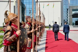 Бишкек, 29.04.26 /Кабар/. Того Республикасынын министрлер кеңешинин төрагасы Фор Эссозимна Гнассингбенин кортежи “Ынтымак ордого” келди. Имарат алдына ардак кароол тизилип, өкмөт башчыны президент Садыр Жапаров тосуп алды. Эки өлкөнүн гимндери жаңырууда. Сапардын жүрүшү “Ала-Тоо 24” телеканалынан түз эфирде көрсөтүлүүдө.
