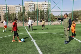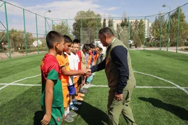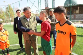 Аземде Камчыбек Ташиев балдарга футбол топторун жана спорттук форма белекке берди, ошондой эле аларга жакшы каалоо-тилектерин айтып, спорттун жана жаш муундар үчүн сергек жашоонун маанилүүлүгүн баса белгиледи.