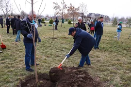 Бишкек, 22.03.25. /Кабар/. Бүгүн "Адинай" паркында президент Садыр Жапаровдун "Жашыл мурас" демилгесинин, ошондой эле Бишкек шаарын көрктөндүрүү жана жашылдандыруу боюнча президент тарабынан жарыяланган эки айлык ишембиликтин алкагында дарак отургузуу акциясы өттү. Бул тууралуу Тышкы иштер министрлигинен билдиришти.