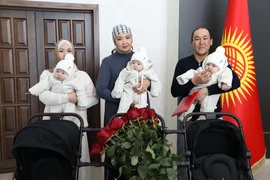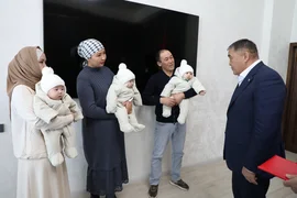Жаш үй-бүлөдө үч эмдин төрөлгөнүн эске алуу менен, ошондой эле өлкөдөгү демографиялык абалды жакшыртуу жана калктын өсүшүн колдоо максатында Ташиев тарабынан Бишкектен эки бөлмөлүү батирдин ачкычы тапшырылды.