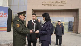 Бишкек, 25.02.25. /Кабар/. Бүгүн 25-февралда Улуу Ата Мекендик согуштун Жеңишинин 80 жылдыгына арналган иш-чаранын алкагында, Улуттук тарых музейге согуш маалында айыгышкан күрѳш жүргѳн Брест чебинен, Хатындан жана Дубосеково кесилишинин алынып келинген топурак салынган капсуланы салтанаттуу тапшыруу аземи ѳттү.