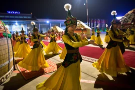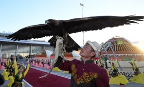 Перрондо улуттук боз үйлөр тигилип, этно-жоокерлер алгыр куштар жана тайгандар менен көчмөн эл маданиятынын элементтерин чагылдырышты.