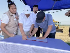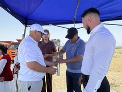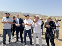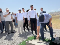 Бишкек, 08.07.25. /Кабар/. Министрлер кабинетинин төрагасынын орун басары - суу ресурстары, айыл чарба жана кайра иштетүү өнөр жайы министри Бакыт Төрөбаев Ысык-Ата районунун Сары-Жон айылындагы "Сары Жон" асыл тукум канаттуулар заводунун курулушуна капсула салды.