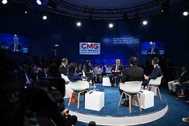Бишкек, 25.06.25. /Кабар/. Министрлер кабинетинин төрагасы Адылбек Касымалиев "Жайкы Давос - 2025" Бүткүл дүйнөлүк экономикалык форумунун жылдык жыйынына катышуунун алкагында "Бир алкак, бир жол" демилгеси кайда баратат?" деген темадагы панелдик сессияда сөз сүйлөдү.