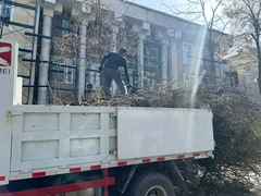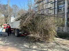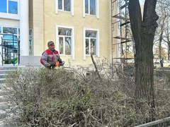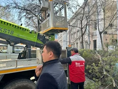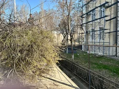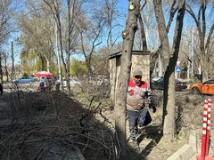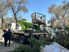 Бишкек, 20.03.25. /Кабар/. «Бишкек жашыл курулуш» муниципалдык ишканасынын кызматкерлери бактарды санитардык бутоо иштерин жүргүзүүдө.