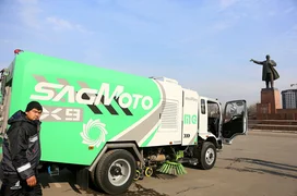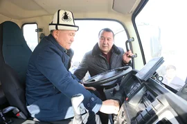 Ош шаарынын мэри аталган курулуш компаниясынын директору Шайырбек Мыктыбековго ыраазычылык билдирип, жаңы атайын көчө тазалоочу унааны сынап көрдү.