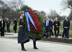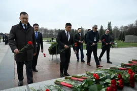 Бишкек, 18.04.25. /Кабар/. Жогорку Кеңештин төрагасы Нурланбек Тургунбек уулу Россиядагы иш сапарынын алкагында Санкт-Петербург шаарындагы "Мекен – эне" монументине гүлчамбар коюу аземине катышты.