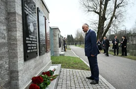 Парламенттин басма сөз кызматынан билдиришкендей, төрага Көз карандысыз мамлекеттер шериктештигине мүчө өлкөлөрдүн парламенттеринин жетекчилери менен бирге Улуу Ата Мекендик согуштун курмандыктарын эскерип, Ленинград шаарын коргоого катышкан кыргызстандык жоокерлерге арналган эскерүү тактасына да гүл койду.