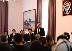 Бишкек, 19.04.26 /Кабар/. Жогорку Кеңештин төрагасы Марлен Маматалиев коштоп барган депутаттар менен бирге Германияда окуп, иштеп жашап жаткан мекендештер менен жолугушту.