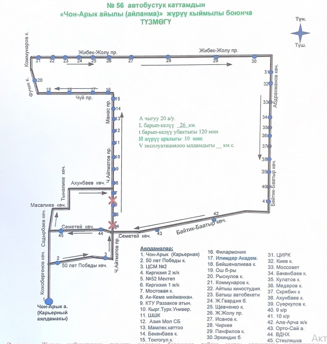Ал эми №56 автобусу А. Масалиев жана Д. Садырбаев көчөлөрү аркылуу жүрөт.
