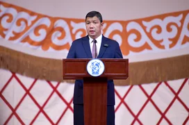 Майрамдык салтанатта мэр Айбек Жунушалиев сөз сүйлөп, кыргыз тилинин тарыхына жана келечегине токтолду.