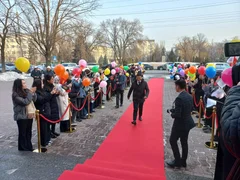 Айыл чарба багытынын алдыңкыларын уюштуруучулар кызыл килемден өткөрүп, салтанаттуу түрдө тосуп алышты.