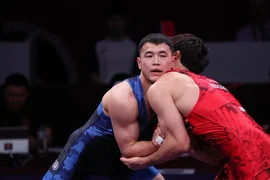 77 кг салмак ченинде күч сынашкан Акжол Махмудов финалдык беттеште Ирандын өкүлү Али Оскуну жеңди.