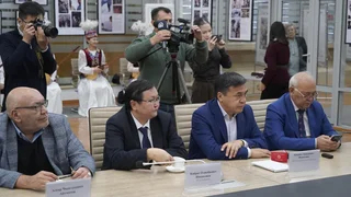 Бишкек, 10.11.2024. / Кабар /. Улуттук китепканада кыргыздын улуу акыны Алыкул Осмоновдун “Замандан заманга” аттуу азербайжан тилиндеги китебинин бет ачары болуп өттү.