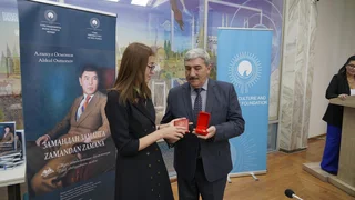 Мындан сырткары, министрдин орун басары китепти которгон азербайжан жазуучусу жана манасчы Адиль Жамилге министрликтин "Маданияттын мыкты кызматкери" төш белгисин тапшырды.