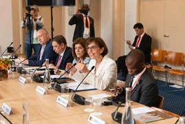 Бишкек, 27.05.25. /Кабар/. Министрлер кабинетинин төрагасынын орун басары – Суу ресурстары, айыл чарба жана кайра иштетүү өнөр жайы министри Бакыт Төрөбаев Бүткүл дүйнөлүк жаныбарлардын саламаттыгын коргоо уюмунун (мындан ары - WOAH) ассамблеясынын башкы сессиясынын алкагында, уюмга мүчө өлкөлөрдүн өкүлдөрү-министрлер менен болгон жабык жолугушууга катышты.