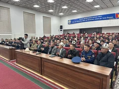 Бишкек, 05.03.26. /Кабар/. Министрлер кабинетинин төрагасынын биринчи орун басары Данияр Амангелдиев президенттин Баткен облусундагы жаңы дайындалган өкүлү Мамыржан Рахимовду облус активине тааныштырды.