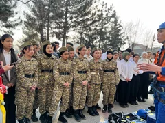 Ошондой эле окуучуларга Өзгөчө кырдаалар министирлигинин өкүлдөрү жарандык коргонуу боюнча атайын көргөзмө уюштурушту.