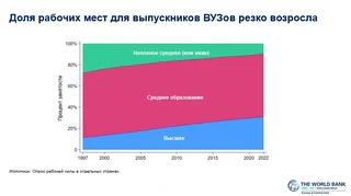 Ал эми Бүткүл дүйнөлүк банктын Европа жана Борбордук Азия өлкөлөрү боюнча экономисти Ивайло Изворски Европа жана Борбордук Азия өлкөлөрүндө билим алууга болгон мүмкүнчүлүк мактоого татыйт, бирок билим сапаты, айрыкча техникалык жана жогорку кесиптик билимдин сапаты 10 жылдан ашык убакыттан бери төмөндөп жатканын Дүйнөлүк банктын докладына карата презентациясында билдирди.