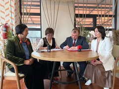 Иш-чаранын алкагында М.Р. Рахимова атындагы Кошумча кесиптик билим берүү институтунун директору Гульнара Усенгазиева жана Казакстан Республикасынын "Жетiсу" өлкөтаануучулар борбору” коомдук бирикмесинин директору Кажет Андас эки тараптуу өз ара пайдалуу кызматташтык келишимине кол коюшту.