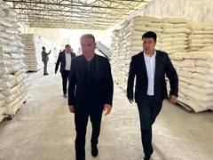 Бишкек, 24.04.26. /Кабар/. Президенттин Баткен облусундагы өкүлү Мамыржан Рахимов Кызыл-Кыя шаарына болгон иш сапарынын алкагында "Кызыл-Кыя уну" ишканасынын өндүрүш ишмердүүлүгү менен таанышты.