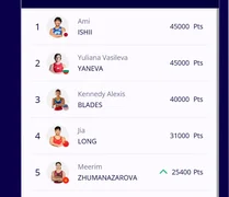 Рейтингде биринчи орунга япониялык балбан, экинчи орунга болгариялык спортчу, үчүнчүгө АКШнын өкүлү, төртүнчүгө кытайлык балбан жайгашты.