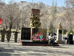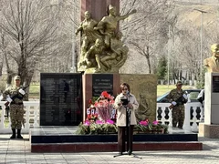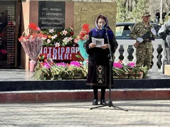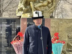 Маалыматта белгиленгендей, революцияда курман болгон баатырларга арналып тургузулган эстеликке гүл чамбар коюлуп, куран окутулду.
