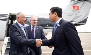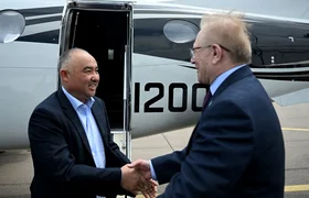 Кыргыз делегациясын Астана шаарында жайгашкан Нурсултан Назарбаев атындагы эл аралык аба майданынан Казакстандын парламентинин Мажилисинин төрагасынын орун басары Альберт Рау баштаган жетекчилер тосуп алды.