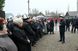 Салтанатта оорукананын кызматкерлери жана жергиликтүү эл менен жолугушкан Төрага Кербен шаарын өнүктүрүү багытында жүргүзүлүп жаткан иштер тууралуу учкай кеп кылды.