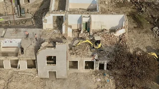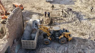 Учурда атайын техникалар тартылып, тиешелүү кызматтардын көзөмөлүндө коопсуздук талаптары так сакталган шартта демонтаж иштери этап-этабы менен жүргүзүлүүдө.
