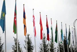 Аэропорттун флагштокторуна Регионалдык экологиялык саммитке (РЭС) катышуучу өлкөлөрдүн мамлекеттик туулары илинген, килем төшөлүп, ардак кароол тизилген.