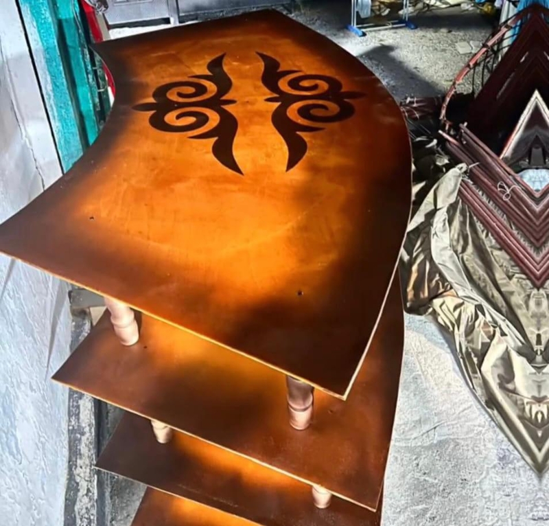 - Темирлерин Россиядан буйрутма кылып алдырабыз. Кездемелердин көпчүлүгү өзүбүздөн чыгат. Айрымдары Кытайдан келет. Жыгач да колдонулат. Биз колдонгон материалдарды күбө жебегендиктен, дайыма колдонууга ылайыктуу, суу өтпөйт. Анткени, ортосуна коргоочу клеенка кошуп тигебиз. Чийдин ордуна кийиз, кездемелер менен кетет. Сырты жасалганып, бел боолоруна оймо бастырылып кооздолот. Каалоочуларга ичине жалпак столдорду кошо жасайбыз.