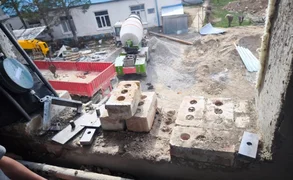Бишкек, 23.04.26. /Кабар/. Талас облусунун Көпүрө-Базар айылындагы оорукананын курулушунда кирпичтердин сапаты текшерилди.