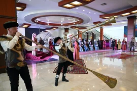 Флагштокторго эки өлкөнүн желектери илинди, килем төшөлдү, улуттук боз үй түрүндө инсталляция орнотулду, ардак кароол тизилди.