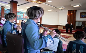 Мамлекет башчылары кыргыз жана тажик музыкалык чыгармаларын аткарган кыргыз артисттеринин катышуусундагы концерттик программаны көрүштү.