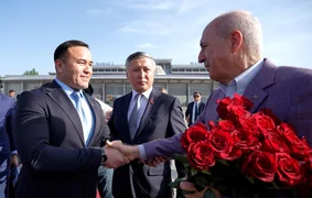 Ардактуу конокту “Манас” эл аралык аэропорттунан Жогорку Кеңештин төрагасынын орун басары Нурланбек Азыгалиев жана Түркия менен кызматташуу боюнча достук тобунун жетекчиси Алишер Козуев тосуп алды.