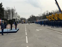Бишкек, 23.02.26. /Кабар/. Бишкек шаарындагы Турдакун Усубалиев атындагы аянтта Өзгөчө кырдаалдар министрлигине атайын техникаларды тапшыруу аземи өттү.